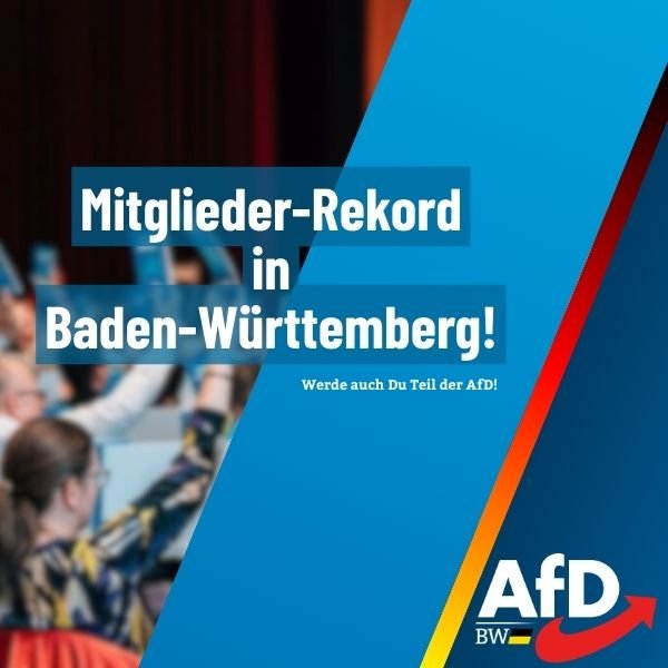 Wir als AfD Baden-Württemberg schreiben Geschichte: Unser Landesverband wächst so stark wie nie zuvor – und wir stehen geschlossener da denn je. Unsere Mitgliederentwicklung auf Rekordkurs!   In weniger als drei Jahren hat sich unsere Mitgliedschaft mehr als verdoppelt. Dieser enorme Zula...